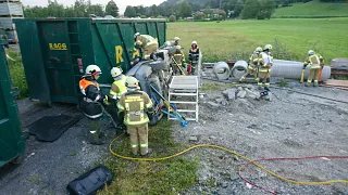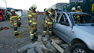 Übungsannahme war ein Verkehrsunfall mit zwei eingeklemmten Personen. Der PKW ist dabei seitlich neben einem Container zu liegen gekommen. Durch diese Seitenlage wurde die Menschenrettung erschwert, da beispielsweise eine Schaffung eines Zuganges über das Dach nicht möglich war.